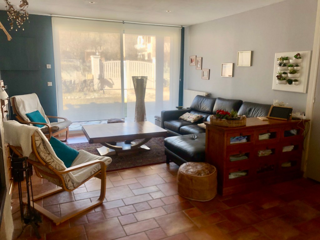 La maison de 150 m2 sur deux niveaux est composée au RdC d’une grande cuisine très bien équipée, d’une grande salle à manger pouvant recevoir 8 personnes à table, d’un salon confortable avec TV et bibliothèque, d’une salle de bain avec douche et WC, d’une entrée dressing et buanderie. Toutes les pièces à vivre sont éclairées par des baies vitrées qui donnent directement sur le jardin.